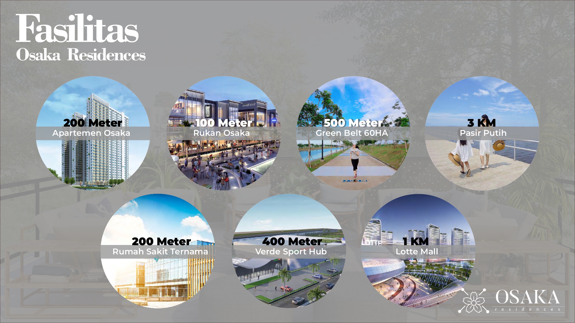 Osaka Residence berlokasi di dalam kawasan kota mandiri PIK 2 dengan total lahan hingga 3000 Ha. Dikelilingi infrastruktur yang terintegrasi dengan berbagai fasilitas Publik. Terhubung dengan akses tol langsung, Hanya 7 menit ke bandara Soetta dan 15 menit ke kota & Mangga Dua.